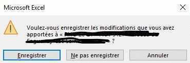 Question avant de cliquer sur quitter Excel