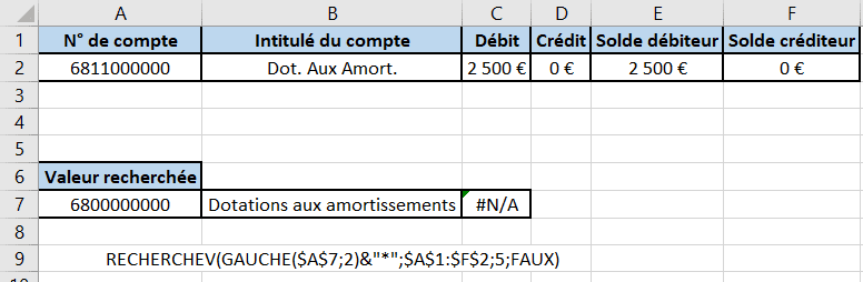 Je voudrais rechercher à partir du compte 6800000000 le compte 6811000000 mais sans modification !