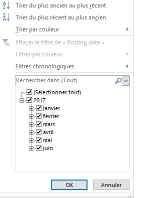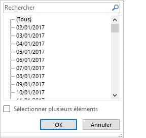 J'ai essayé de changé le format, de faire des conversions, ... mais impossible dans le filtre d'avoir un regroupement des dates.