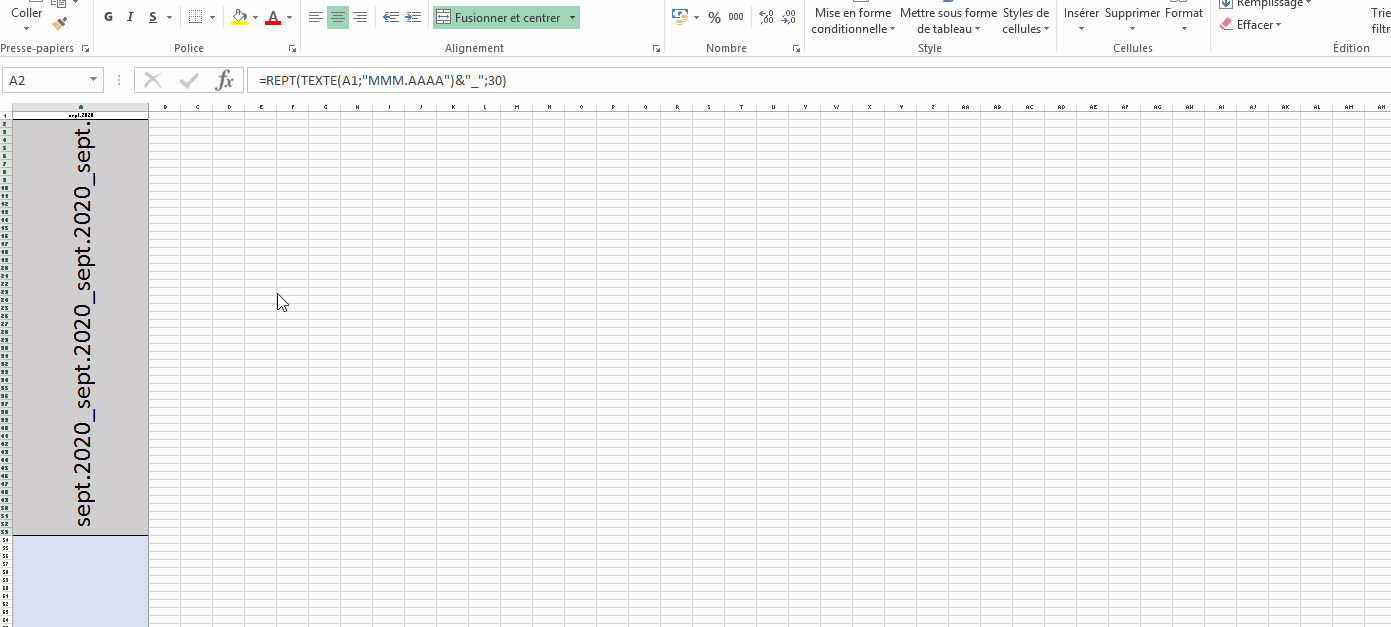 Exemple d'une cellule : "Sep.2020 _ Sep.2020 _ . . . . . _ Sep.2020 _ Sep.2020 _ Sep.2020"