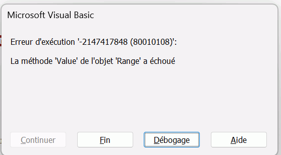 Avec une procédure Userform je peux rajouter une cellule au premier tableau sans pb, mais lorsque je reproduit la même procédure sur le deuxième tableau je me fais jeter systématiquement et excel redémarre sans que j'ai eu accès au débogueur....
