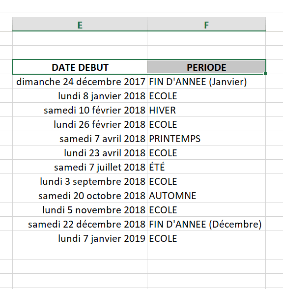 - la deuxième correspond aux dates de fin des vacances