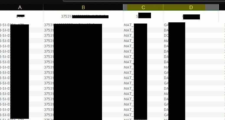 Le point d'entrée, le point commun pour remplir un tableau de 470 lignes a partir d'un de 27 000 lignes ce sont les identifiants " 37XXXXXXXXX".
