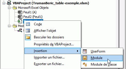 Clic droit sur ThisWorkbook -> Insertion -> Module