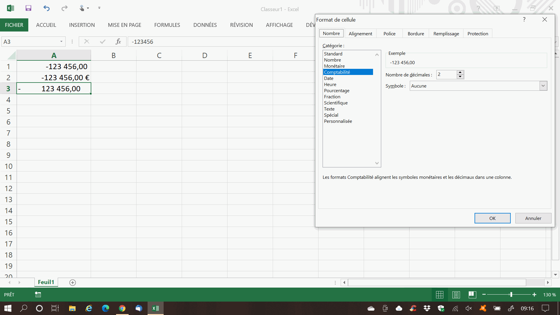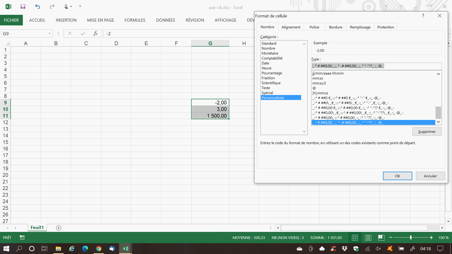 1. Sur certaine feuille de calcul, quand j'applique cet affichage à ma cellule, le représentation est :