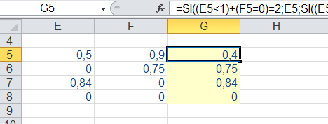 Si et ou dans la formuleLe 10/04/2019 à 15:09NNathalie PageNouveau venuMessages6Excel1903Inscrit10/04/2019 Bonjour,Je souhaite faire un calcul automatique à savoirSi (E5 = <1) et (F5 = <1) : G5 (F5-E5)ousi E5=0 et F5<1 : G5 =F5ousi E5<1 et F5=0 : G5 =E5Est-ce possible?D'avance merci pour votre précieuse aide.Le 10/04/2019 à 15:25mbbpPassionné d'ExcelMessages6'319Excel2007 FRInscrit29/03/2014Bonjour le forum,=SI((E5<1)+(F5=0)=2;E5;SI((E5<1)+(F5<=1)=2;F5-E5;SI((E5=0)+(F5<1)=2;F5)))Le 10/04/2019 à 15:46NNathalie PageNouveau venuMessages6Excel1903Inscrit10/04/2019Merci,Il manque une précision, si e5 et f5 sont à 0 : g5 = 0merci d'avance pour l'aideLe 10/04/2019 à 16:06mbbpPassionné d'ExcelMessages6'319Excel2007 FRInscrit29/03/2014Re.Il suffit d'ajouter cette condition supplémentaire au début de la formule suivie d'un ;Le 10/04/2019 à 21:13mbbpPassionné d'ExcelMessages6'319Excel2007 FRInscrit29/03/2014 Re,Nathalie Page a écrit :Il manque une précision, si e5 et f5 sont à 0 : g5 = 0La formule proposée n'a pas besoin d'être complétée : Rechercher des sujets similaires à "formule"ForumsExcel - VBASi et ou dans la formule