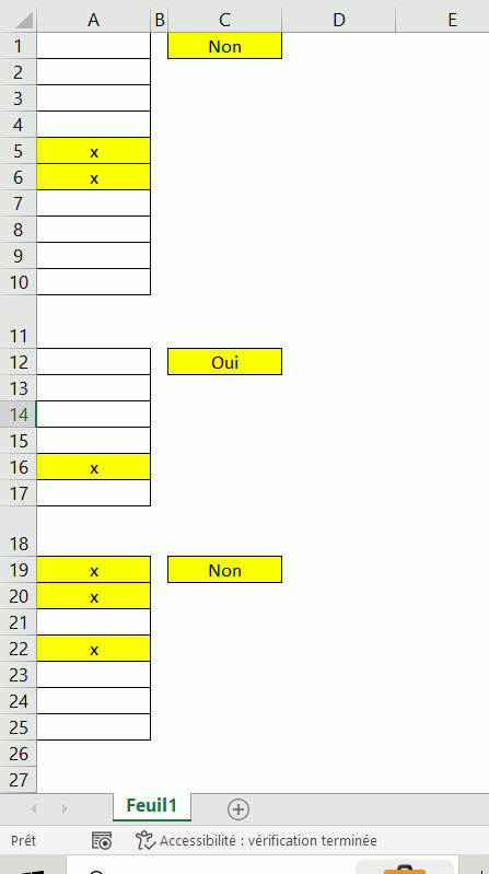 Retournera "Oui" si au moins un "x" est présent dans la plage concernée.