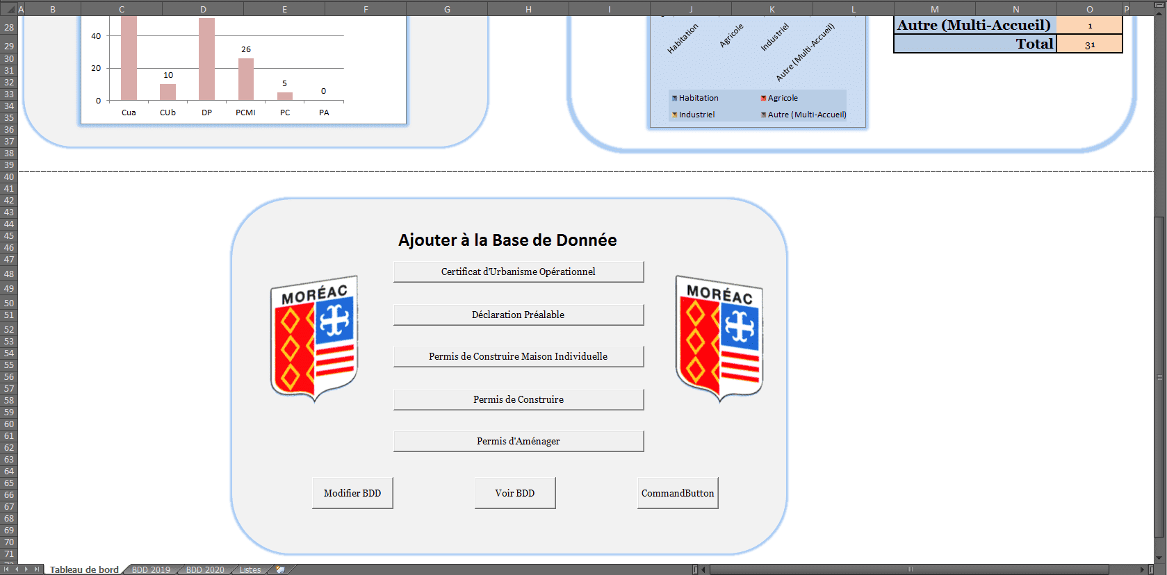- Sous le tableau, un graphique à colonne présentant le nombre de dossiers déposés en mairie :