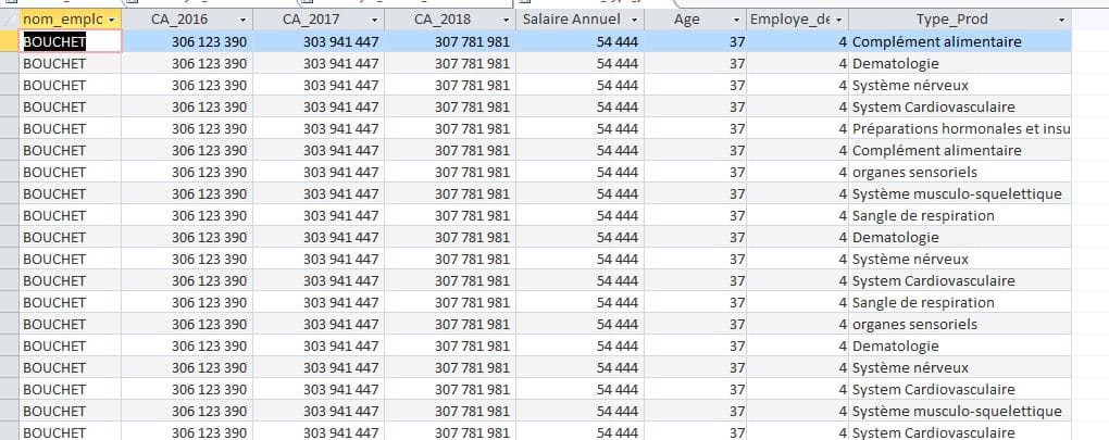 En figure 1, ces mes enregistrements, je voudrai que quand je les exporte sur le TCD, ce dernier ne fera qu'afficher la valeur.