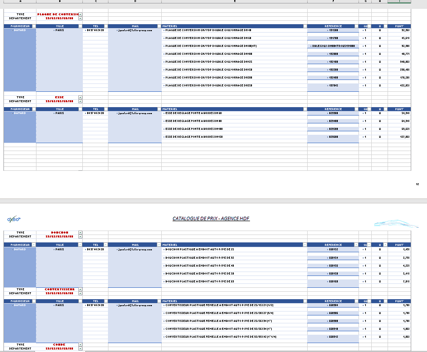 Bonjour , Je travaille actuellement sur un projet de catalogue de prix ou je référence : fournisseurs de matériaux , louageurs engin , matériel , Engin spécifique , fonte de voirie ........ et des 10 aines d'autres sujet et le tout dans la région haut de franque , ce qui fait une énorme base de données .