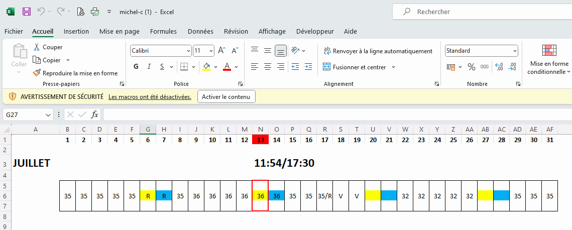 J'ai donc activé les macros et enregistré sous un autre nom (pas certain que ce dernier point soit nécessaire), refermé et ré-ouvert.