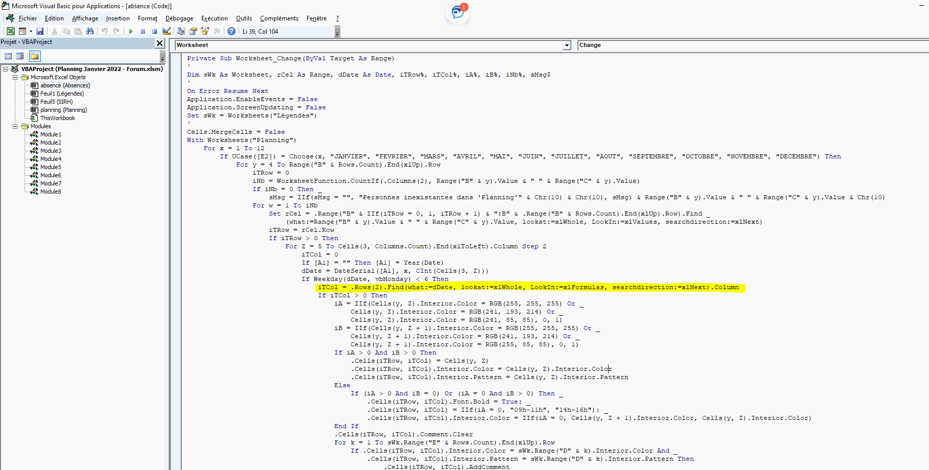 Si maintenant dans l'en-tête du fichier planning, j'ai les formules à la place des dates et des jours de la semaine, est-ce que c'est bien cette ligne il faut que je modifie? en ajoutant .value?