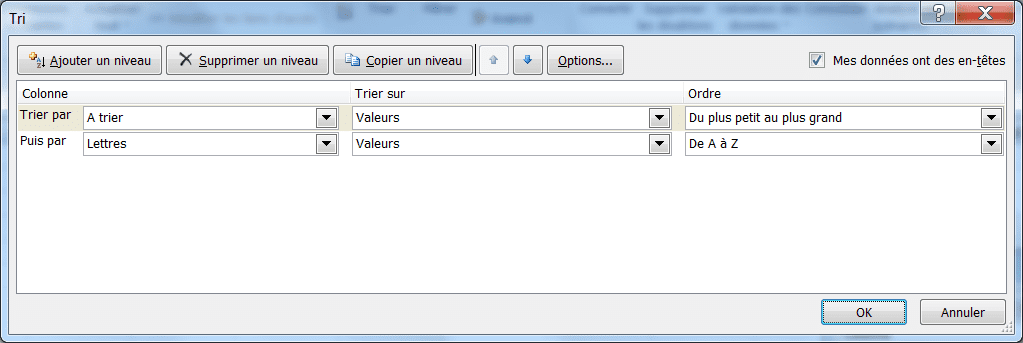 J'aimerais filtrer le tableau pour voir dans la fameuse colonne :