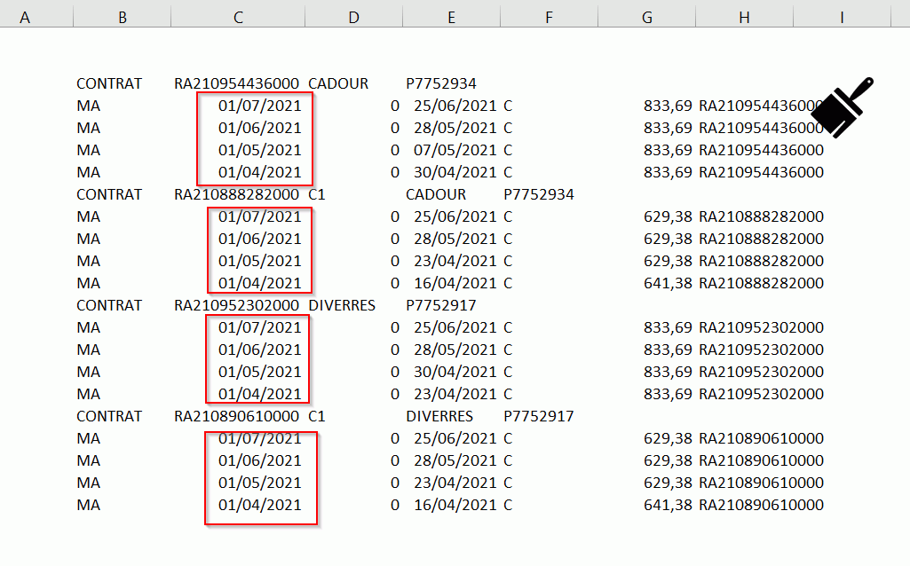 j'ai besoin de trier ces données en fonction des dates et aussi les compléter jusqu'au terme de l'année. C'est a dire si on a dans notre tableau un échéancier qui a pour dernière date le 01/07/2021, on ajoute des lignes 01/08/2021, 01/09/2021,..., 01/12/2021.