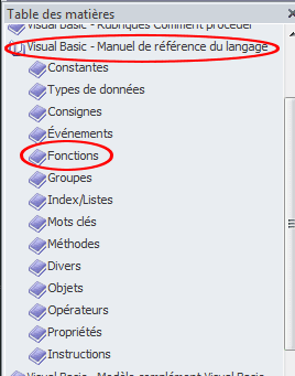 L'Aide me paraît le lieu privilégié pour trouver la liste de toutes les fonctions VBA, de même que toutes autres informations de référence sur le langage...