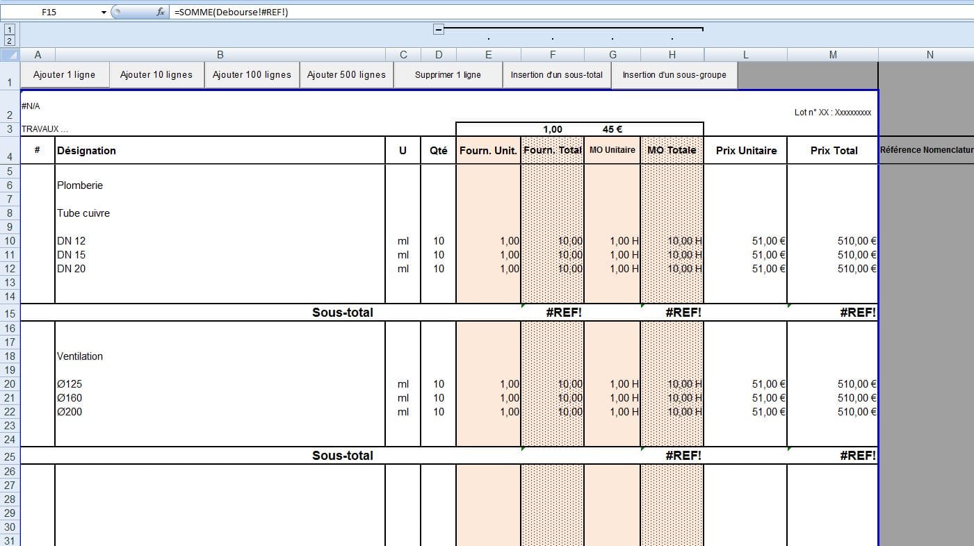Sur les 2 lignes 15 et 25, vérifie d'abord que pour tes sous-totaux, il n'y a aucune formule ;