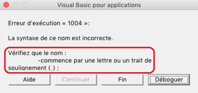 le message d'erreur de ta copie d'écran est clair : tu as un nom défini dont le 1er caractère est ni une lettre, ni un trait de soulignement.
