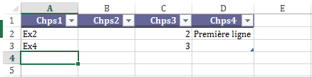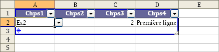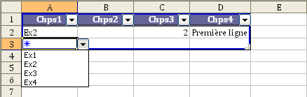 Maintenant, à quoi me sert cette nouvelle ligne créée automatiquement ? Hé bien l'utilisateur peut alors utiliser les listes déroulantes sur cette ligne (donc quand la liste de données est activée) et donc entrer une nouvelle information :