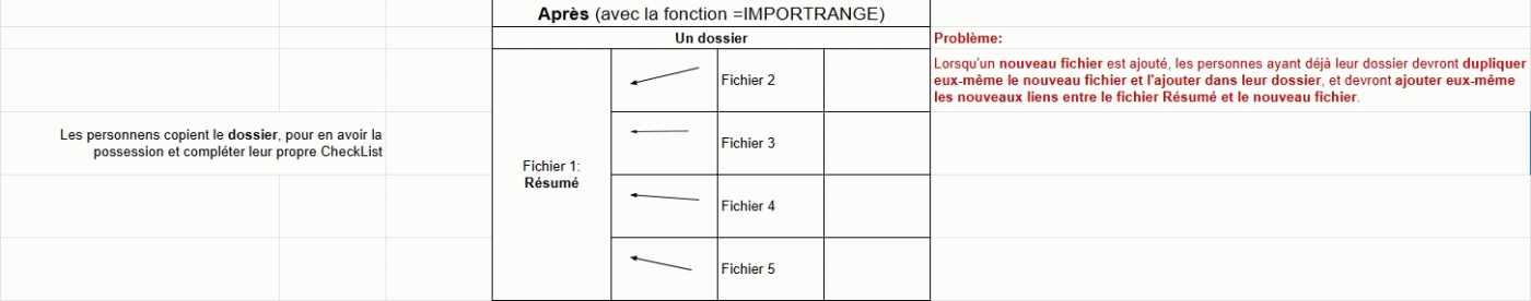 En ayant découvert et compris la fonction =IMPORTRANGE, je vais pouvoir faire communiquer plusieurs fichiers avec le fichier "Résumé". Ainsi, chaque génération de Pokémon pourra être isolée. Mais ça ne résout en rien ma problématique... Les personnes qui auront leur propre version du dossier seront toujours obligées d'ajouter manuellement le nouveau fichier dans leur dossier, puis de faire de leur côté les liens entre le fichier Résumé et le nouveau...