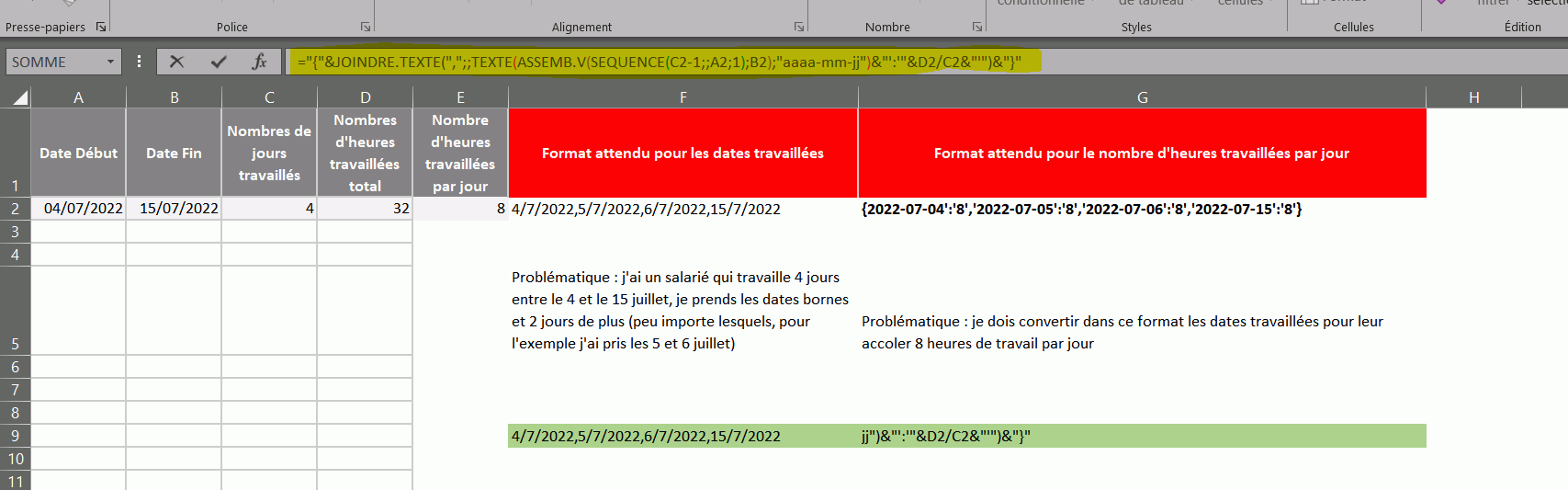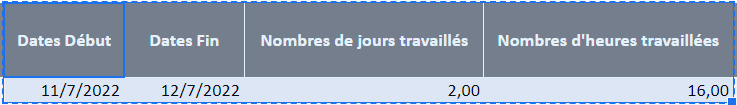 Soit la liste des jours entres "dates de début" et "dates de fin". La liste doit comprendre autant de jour qu'indiqué dans la colonne "Nb de jours travaillés"
