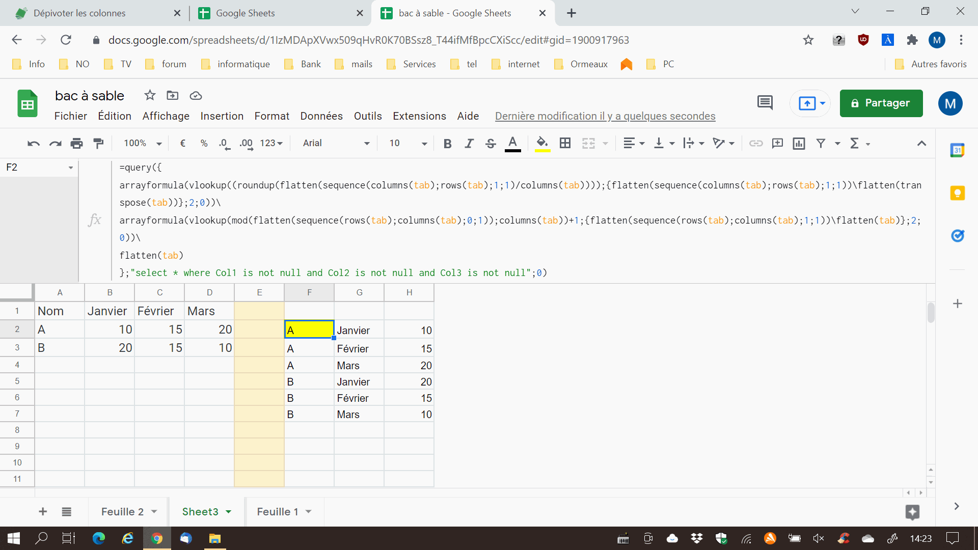 Je sais qu'il est possible de la faire sur Excel grâce à power Query. Seulement voila, dans mon entreprise nous travaillons uniquement sur google Sheets. Et je n'ai pas trouvé de solution afin d'avoir le même résultat.