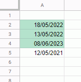 Comme on peut le constater, les trois dates dans le futur sont mises en surbrillance, alors que dans l'idée, il faudrait que seule la cellule A3 soit colorée.