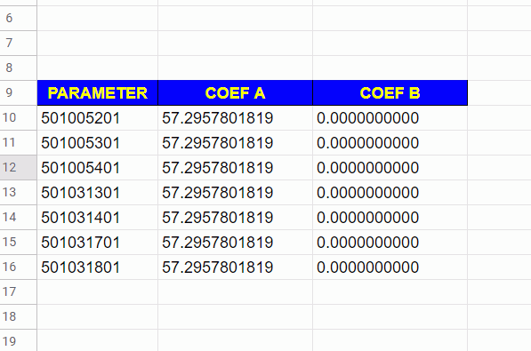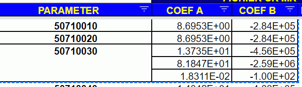 j'ai extrait les coefficients et j'aimerais que les coeff A et les coeff B soient en dessous les uns des autres.
