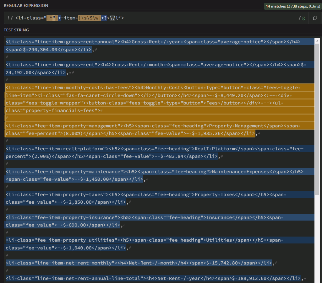 var section = html.match(/(<div id="property-financials">(.*)<li class="line-item cap-rate line-total no-border-top ">)/g)[0]
