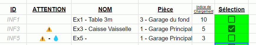 Petit exemple : Dans CUIR, je n'ai sélectionné que l'item avec l'ID INF3